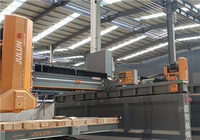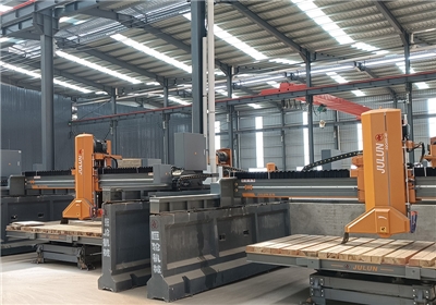 該機采用PLC可編程控制系統(tǒng)和人機操作界面,輔以高精度旋轉(zhuǎn)編碼器定位及紅外線標(biāo)線器,左右走刀采用變頻器控制,可根據(jù)石材材質(zhì)進行調(diào)速,上下升降采用液壓升降,結(jié)合鍍鉻導(dǎo)柱+耐磨導(dǎo)套,配合間隙小,耐磨美觀,并在導(dǎo)套內(nèi)設(shè)計多層密封,防水防塵防漏油,提高使用壽命,關(guān)鍵部位均采用進口零配件,因而具有切割效率高、切割精度高、穩(wěn)定性高、操作簡便等優(yōu)點,特別適用于高價值大規(guī)格花崗巖、大理石板材的切割。