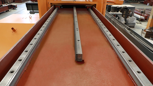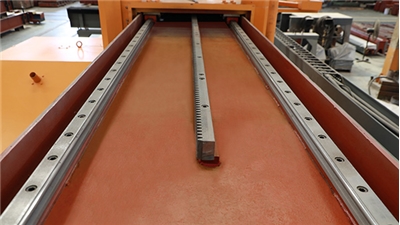 1、大梁采用外模鋼板+工業(yè)級鋼筋混凝土結(jié)構(gòu),左右行走采用進(jìn)口直線導(dǎo)軌導(dǎo)向,行走更靈活、切割的板材平整度好。