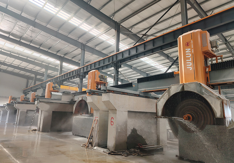 1、全鑄件大梁結構,左右走刀采用變頻器控制,可根據(jù)石材材質(zhì)進行調(diào)速,行走更靈活、切割的板材平整度好。